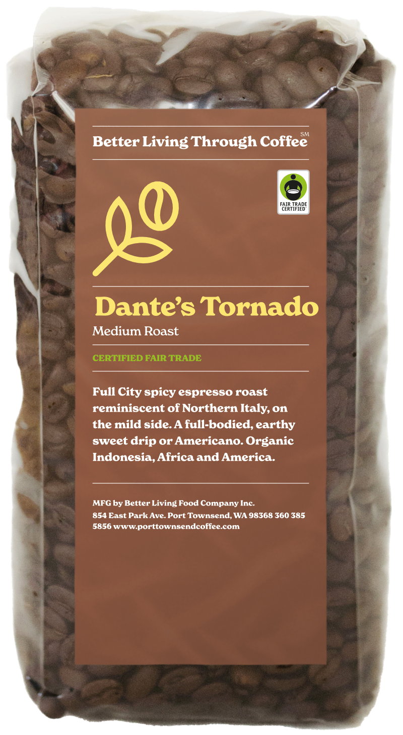 Full City smooth espresso roast reminiscent of Northern Italy, on the mild side. A full-bodied, earthy sweet drip or Americano. Indonesia, Africa and America.